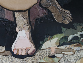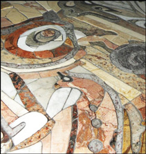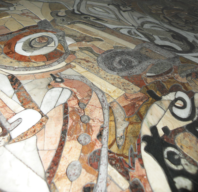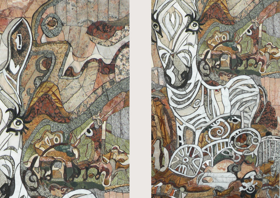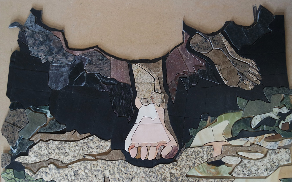Kolejnym etapem pracy jest wycinanie z kamienie kolejnych elemetów mozaiki i jej montaż, tym zadaniem zajmuje się Michał Kotula, który jest również konserwatorem kamienia z 15-letnim doświadczeniem. Współpraca ta umożliwia uaktualnienie florenckiej mozaiki we wpółczesnej przestrzenii.