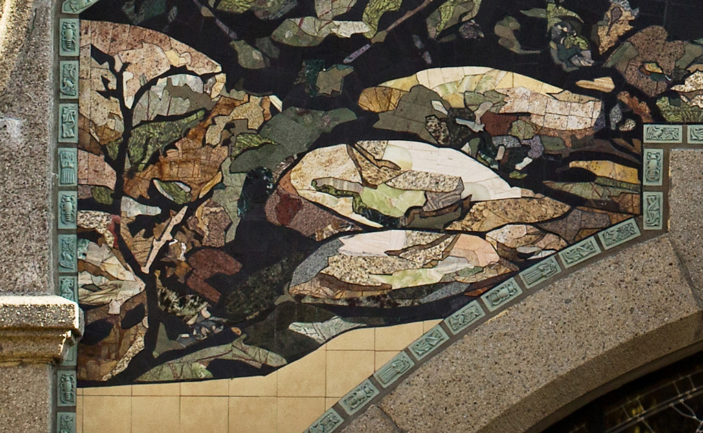 i zamontowane osobno. Prace nad mozaiką rozpoczęto w połowie 2014,